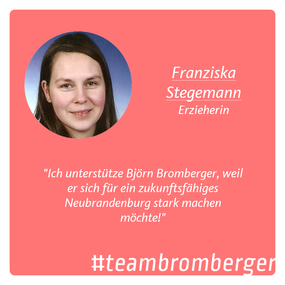 Sonntag = Unterstützertag! Auch Franziska Stegemann unterstützt mich auf meinem Weg in den Landtag. Sie sagt: „Ich unterstütze Björn Bromberger, weil er sich für ein zukunftsfähiges Neubrandenburg stark machen möchte!“