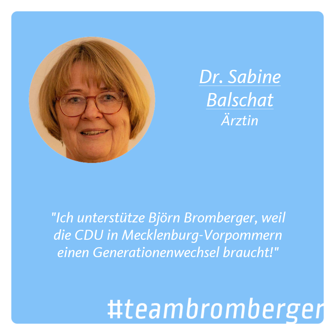 Sonntag = Unterstützertag! Auch Sabine Balschat unterstützt mich auf meinem Weg in den Landtag. Sie sagt: „Ich unterstütze Björn Bromberger, weil die CDU in Mecklenburg-Vorpommern einen Generationenwechsel braucht!“